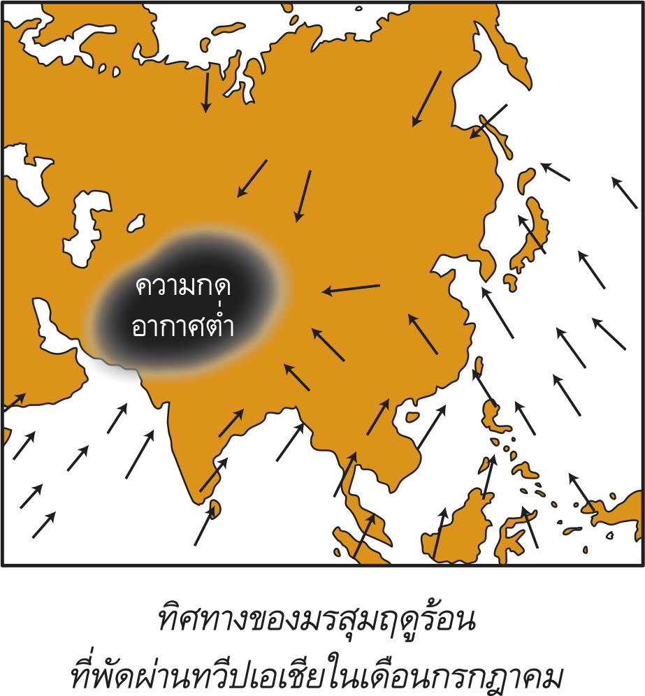 - ลมประจำพัดที่พัดผ่าน ได้แก่ ลมประจำฤดูกาล พายุหมุน