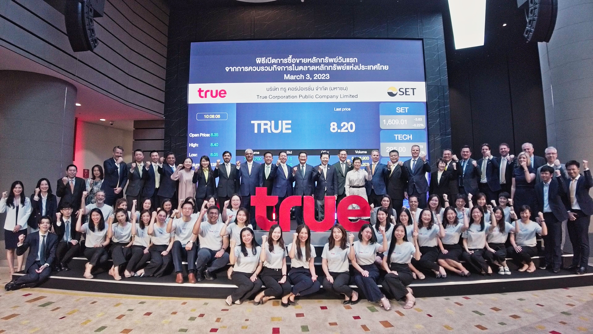 พิธีเปิดการซื้อขายหลักทรัพย์ TRUE วันแรก จากการควบรวมกิจการในตลาดหลักทรัพย์แห่งประเทศไทย