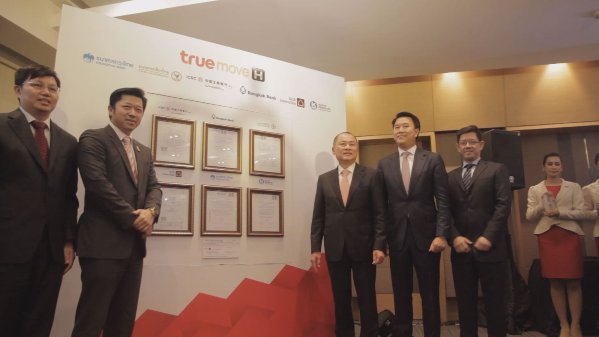 อีกหนึ่งภาพความประทับใจที่ยิ่งใหญ่ของพวกเราชาวทรู โดย ทรูมูฟ เอช ยูนิเวอร์แซล คอมมิวนิเคชั่น (TUC) คุณศุภชัย เจียรวนนท์ กรรมการผู้จัดการใหญ่และประธานคณะผู้บริหาร ทรู คอร์ปอเรชั่น ได้รับความไว้วางใจจาก 6 สถาบันทางการเงิน อันได้แก่ ธนาคารไอซีบีซี (ไทย) จำกัด (มหาชน), ธนาคารกรุงเทพ จำกัด (มหาชน), ธนาคารกสิกรไทย จำกัด (มหาชน), ธนาคารไทยพาณิชย์ จำกัด (มหาชน), ธนาคารกรุงไทย จำกัด (มหาชน) และ ธนาคารเกียรตินาคิน จำกัด (มหาชน) พร้อมจัดพิธีลงนามผนึกความร่วมมือเพื่อออกหนังสือค้ำประกันวงเงินถึง 73,036.06 ล้านบาท ให้กลุ่มทรูได้เป็นเจ้าของคลื่นความถี่ 900 MHz ที่เพิ่งชนะการประมูลมาได้อย่างสมบูรณ์แบบ ซึ่งกลุ่มทรูจะเดินหน้านำคลื่นดังกล่าวมาใช้ได้อย่างมีประสิทธิภาพสูงสุด เพื่อที่จะตอบสนองความต้องการของตลาด และสร้างโครงสร้างพื้นฐานให้ 4G ของประเทศไทยเป็น 4G ที่มีคุณภาพได้มาตรฐานระดับโลก สานต่อความมุ่งมั่นของกลุ่มทรูที่จะสร้างโครงข่ายที่ดีที่สุดอย่างต่อเนื่อง