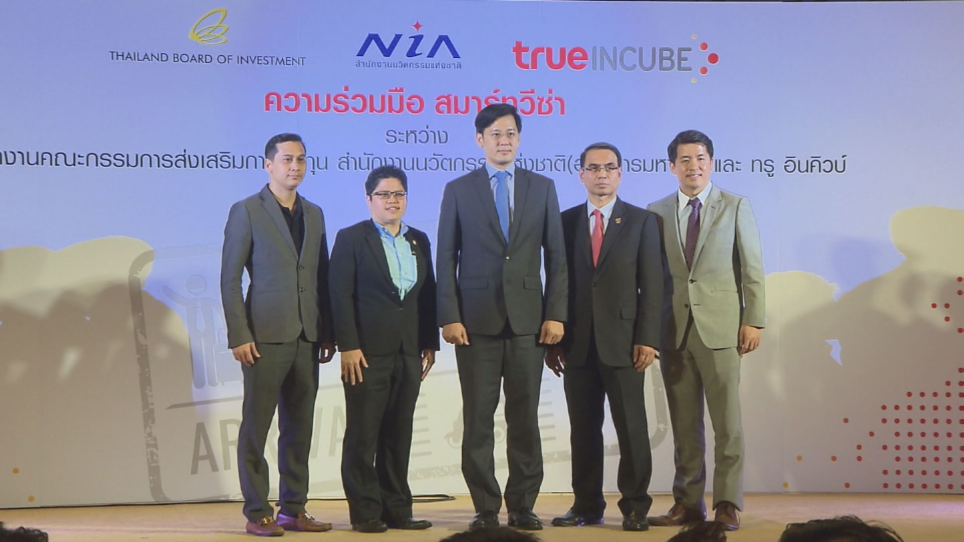 ดร.อภิชัย สมบูรณ์ปกรณ์ ที่ปรึกษารัฐมนตรีว่าการกระทรวงวิทยาศาสตร์และเทคโนโลยี เป็นประธานในงานแถลงข่าวความร่วมมือสมาร์ทวีซ่า ระหว่าง สำนักงานคณะกรรมการส่งเสริมการลงทุน.หรือ บีโอไอ โดย นายโชคดี แก้วแสง รองเลขาธิการ และ สำนักงานนวัตกรรมแห่งชาติ (องค์การมหาชน) โดย ดร.กริชผกา บุญเฟื่อง รองผู้อำนวยการ ร่วมด้วย ดร.ธีระพล ถนอมศักดิ์ยุทธ หัวหน้าคณะผู้บริหารด้านนวัตกรรมและความยั่งยืน บมจ.ทรู คอร์ปอเรชั่น ในโอกาสที่ ทรู อินคิวบ์ ได้รับการแต่งตั้งให้เป็นพันธมิตรบริษัทเอกชนรายแรกในประเทศไทย ที่สามารถให้การรับรองคุณสมบัติของสตาร์ทอัพต่างชาติที่ยื่นขอสมาร์ทวีซ่า ประเภท SMART “S” โดยสตาร์ทอัพต่างชาติที่จัดตั้งหรือดำเนินกิจการในอุตสาหกรรมเป้าหมาย 10 ประเภท และได้เข้าร่วมโครงการบ่มเพาะ หรือ โครงการเร่งการเติบโต ของทรู อินคิวบ์ จะได้รับการรับรองคุณสมบัติการเป็นผู้มีสิทธิได้รับสมาร์ทวีซ่า ซึ่งความร่วมมือในครั้งนี้ สะท้อนถึงความเชื่อมั่นของหน่วยงานภาครัฐในศักยภาพและมาตรฐานโปรแกรมบ่มเพาะของทรู อินคิวบ์ ผู้นำด้านสตาร์ทอัพครบวงจรในการให้บริการและส่งเสริมสตาร์ทอัพไทยให้ก้าวไกลสู่ระดับโลก ด้วยระบบนิเวศระดับภูมิภาค