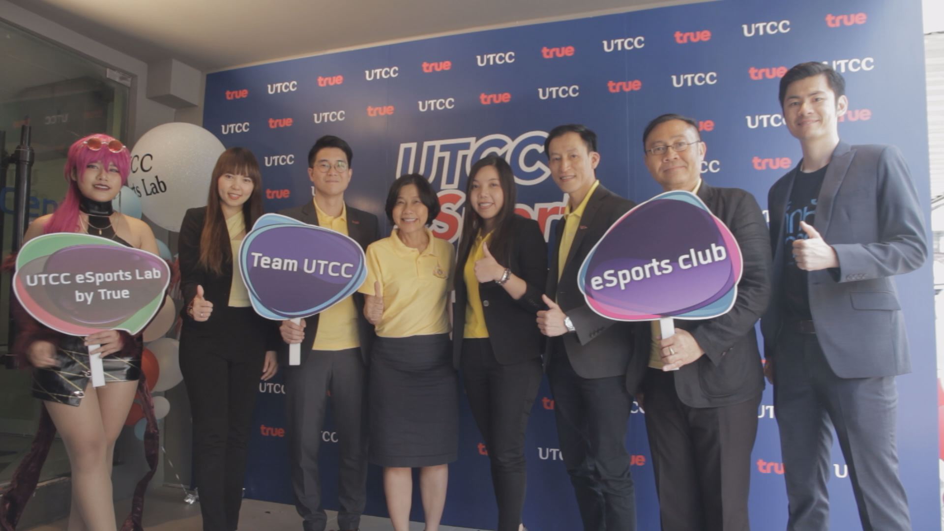มหาวิทยาลัยหอการค้าไทย โดย รองศาตราจารย์ ดร.เสาวณีย์ ไทยรุ่งโรจน์(ที่ 4 จากซ้าย) อธิการบดี ร่วมกับ กลุ่มทรู โดย นางสาวอัจฉรา โสตถิพัฒนพงศ์ (ที่ 5 จากซ้าย) ผู้อำนวยการด้านพัฒนาพื้นที่ ทรู สเปซ เปิดตัว UTCC eSports Lab by True ห้องแล็บอีสปอร์ตครั้งแรกในประเทศไทย ณ ทรู สเปซ อาคาร 20 มหาวิทยาลัยหอการค้าไทย โดยมี ดร.ธาริต นิมมานวุฒิพงษ์(ที่ 3 จากซ้าย) ผู้จัดการทั่วไป บริษัท ทรู สเปซ จำกัด และนายธวัชชัย ฤกษ์สำราญ (ที่ 6 จากซ้าย) รองผู้อำนวยการ Digital Channel / Gamer Segment บมจ. ทรู คอร์ปอเรชั่น ร่วมเป็นสักขีพยาน