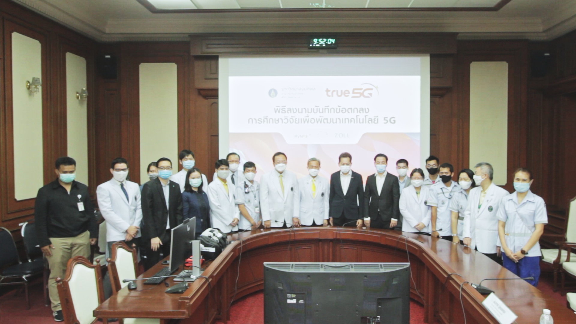 ทรู 5G อัจฉริยภาพสู่โลกใหม่ที่ยั่งยืนของเรา ร่วมยกระดับศักยภาพทางการแพทย์ และสาธารณสุขของประเทศให้เหนือกว่าและยั่งยืนในทุกมิติ โดย นายพิรุณ ไพรีพ่ายฤทธิ์ หัวหน้าคณะทำงานและกรรมการยุทธศาสตร์ 5G บมจ. ทรู คอร์ปอเรชั่น ลงนามบันทึกข้อตกลงความร่วมมือกับคณะแพทยศาสตร์ศิริราชพยาบาล มหาวิทยาลัยมหิดล โดย ศาสตราจารย์ดร.นายแพทย์ประสิทธิ์ วัฒนาภา คณบดี และ รศ. นพ. วิศิษฎ์ วามวาณิชย์ ผู้อำนวยการโรงพยาบาลศิริราช เพื่อนำเทคโนโลยีอัจฉริยะทรู5G มาร่วมพัฒนา วิจัย และทดสอบรูปแบบการใช้งาน (Use Case) สร้างองค์ความรู้ทางวิชาการ รวมทั้งประยุกต์ใช้ให้ตรงกับความต้องการจริงของผู้ใช้บริการ อันจะนำไปสู่การพัฒนาด้านนวัตกรรม และความก้าวหน้าทางด้านวิทยาศาสตร์และเทคโนโลยี รวมทั้งนำผลการวิจัย และผลการทดสอบมาใช้ให้เกิดประโยชน์ต่อประชาชน และภาคธุรกิจอุตสาหกรรม ซึ่งความร่วมมือในครั้งนี้จะครอบคลุมทั้งระบบอินเทอร์เน็ต, ระบบขนส่งและจราจรอัจฉริยะ, ระบบสาธารณสุขทางไกล, ระบบสนับสนุนทางการแพทย์ สิ่งแวดล้อม พลังงาน และเกษตรกรรม พร้อมกันนี้ได้ร่วมกับพันธมิตรพัฒนาโซลูชั่น TeleAmbulance Powered by True 5G : Body Camera & Push to Talk เพื่อนำไปใช้สื่อสารในรถพยาบาลฉุกเฉิน ของศูนย์บริการการแพทย์ฉุกเฉินศิริราช (Siriraj Emergency Medical Service Center) ผ่านเครือข่ายอัจฉริยะTrue 5G โดยรองรับการใช้งานทั้งแบบ Push to Talk และ Push to Video มีปุ่มฉุกเฉินสามารถ stream video แบบเรียลไทม์ไปยังแพทย์เพื่อปรึกษาอาการคนไข้ ณ จุดเกิดเหตุ เพื่อประสานงานกับหน่วยต่างๆ ภายในโรงพยาบาล ทำให้สามารถวางแผนและเตรียมการรักษาได้ทันท่วงที ก่อนผู้ป่วยจะเดินทางมาถึงโรงพยาบาล