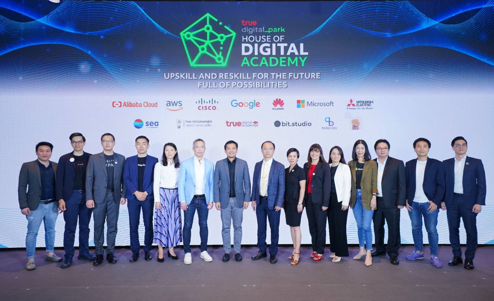 ทรู ดิจิทัล พาร์ค ศูนย์กลางเทคและสตาร์ทอัพที่ใหญ่ที่สุดในอาเซียน โดย คุณฐนสรณ์ ใจดี กรรมการผู้จัดการใหญ่ และ ดร.ธาริต นิมมานวุฒิพงษ์ ผู้จัดการทั่วไป ตอกย้ำความแข็งแกร่งของระบบนิเวศครบวงจรเพื่อสตาร์ทอัพและผู้ประกอบการเทค เดินหน้าส่งเสริมคนรุ่นใหม่และคนไทยอัปสกิลด้านดิจิทัล เพิ่มความรู้และทักษะใหม่ที่องค์กรและตลาดแรงงานยุค 4.0 ต้องการ รวมพลังหลากหลายพันธมิตรองค์กรเทคโนโลยีและดิจิทัลชั้นนำจาก Alibaba Cloud Thailand, Amazon Web Services, Cisco System (Thailand), Google Thailand, Huawei Cloud Thailand, Microsoft (Thailand), Mitsubishi, Sea (Thailand), True Digital Academy, Bit.studio, Tellscore, สมาคมโปรแกรมเมอร์ไทย และการตลาดวันละตอน เปิด “ศูนย์รวมสถาบันการเรียนรู้ด้านดิจิทัลระดับโลก” (True Digital Park House of Digital Academy) แห่งแรกและแห่งเดียวในไทยที่รวมทุกโอกาสการเรียนรู้สำหรับทุกคน ด้วยหลักสูตรยกระดับความรู้และทักษะด้านดิจิทัล ให้ผู้ที่สนใจเข้ามาเรียนรู้และอัปสกิลด้านดิจิทัล เจาะลึกทุกความรู้ด้านเทคโนโลยีดิจิทัลและทักษะด้านดิจิทัลที่สามารถนำไปใช้ได้จริงในการทำงานและการทำธุรกิจ ท่ามกลางบรรยากาศที่เอื้อต่อการสร้างสรรค์นวัตกรรม ตอบโจทย์วิถีการทำงานของคนยุคดิจิทัล ทั้งยังเพียบพร้อมด้วยสิ่งอำนวยความสะดวกครบครัน พร้อมโอกาสพบปะสร้างเครือข่ายสตาร์ทอัพและเทคคอมมูนิตี้ มุ่งเตรียมความพร้อมด้านบุคลากรดิจิทัลสู่ตลาดแรงงานอนาคตในยุคเศรษฐกิจใหม่