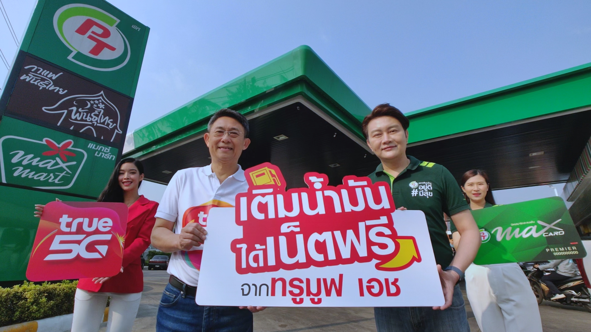 ทรู 5Gเครือข่ายอัจฉริยะ ที่เร็วกว่า แรงกว่า รายแรก รายเดียว ที่ครบสุดทุกย่านความถี่ผนึกพีทีจีบริษัทธุรกิจค้าปลีกน้ำมันเปิดตัวแคมเปญ "เติมน้ำมัน ได้เน็ตฟรี จากทรูมูฟ เอช"มอบสิทธิพิเศษเต็มแมกซ์เฉพาะลูกค้าทรูมูฟ เอช สมาชิก PT Max Card เท่านั้นให้การเดินทางยุคดิจิทัล ท่องโลกออนไลน์ได้ฟรีง่ายๆ เพียงเติมน้ำมันที่สถานีบริการน้ำมันพีทีทั้ง 2,094 สาขาทั่วประเทศตั้งแต่ 2 ลิตร*ขึ้นไปพร้อมแสดงบัตรสมาชิกฯ จะได้รับรหัสเติมเน็ตท้ายใบเสร็จ ก็สามารถรับสิทธิ์ได้เน็ตฟรีสูงสุด1.2 GB จากทรูมูฟ เอช ตามจำนวนลิตรที่เติมน้ำมัน*ผ่านแอปทรูไอดี หรือกดรับสิทธิ์ทางโทรศัพท์ ได้ตั้งแต่วันที่ 1 มีนาคม ถึง 31 พฤษภาคม2564