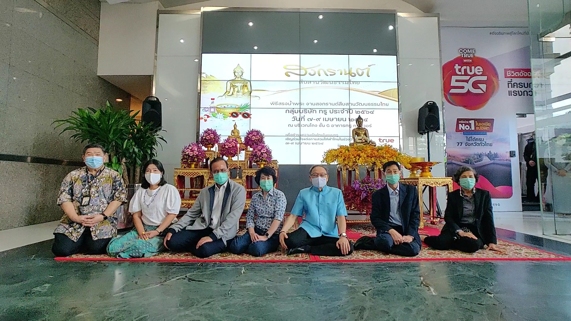 พิธีสรงน้ำพระ งานสงกรานต์สืบสานวัฒนธรรมไทย กลุ่มบริษัท ทรู ประจำปี ๒๕๖๔
