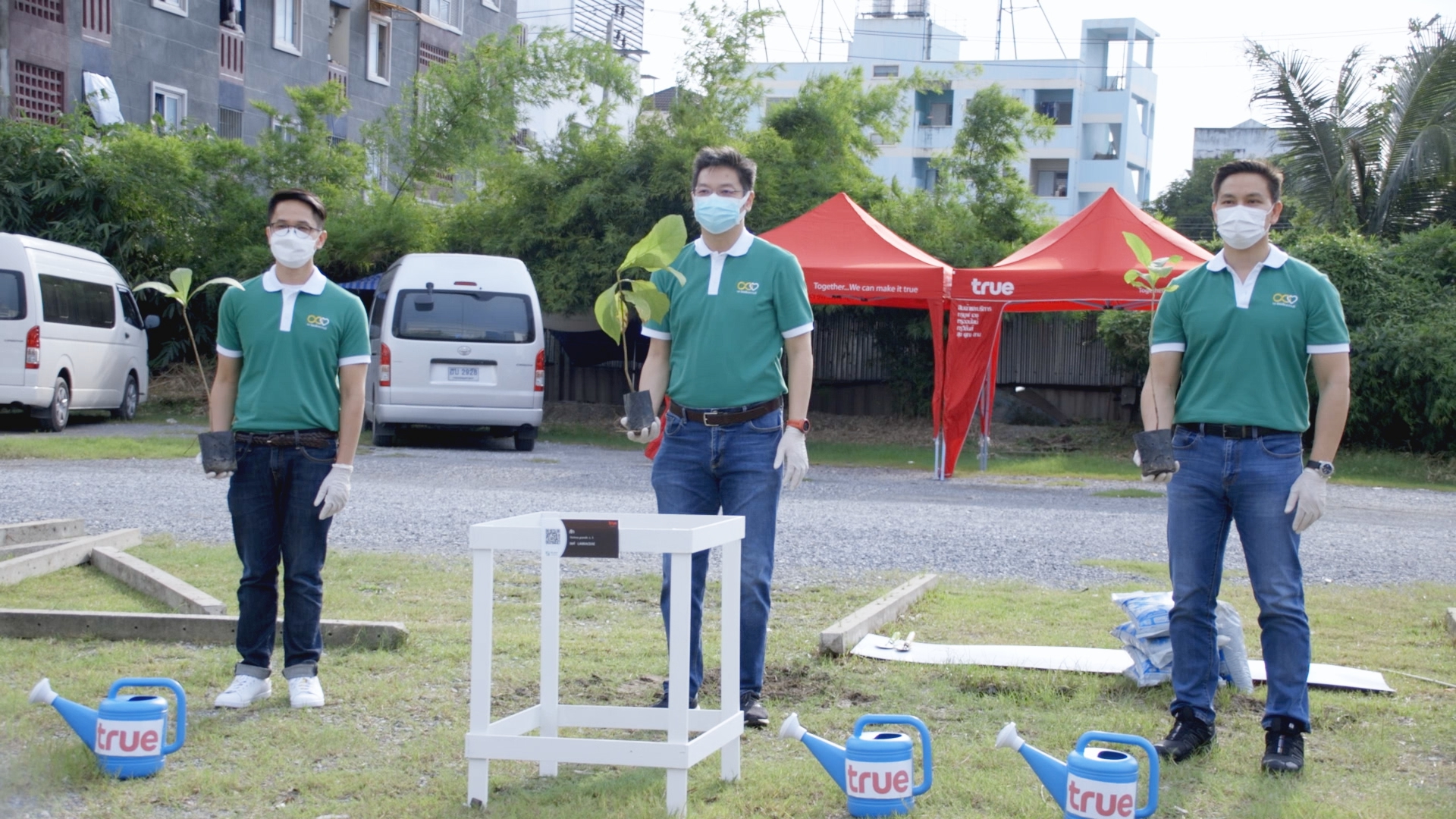 ด้วยคุณค่าของ “ต้นไม้” ที่สามารถเป็นเกราะป้องกันโลกร้อนอย่างดี อีกทั้งยังเป็นแหล่งผลิตโอโซนให้ชั้นบรรยากาศ เพิ่มออกซิเจน และพื้นที่สีเขียว...กลุ่มทรู นำโดย นายมนัสส์ มานะวุฒิเวช นายณัฐวุฒิ อมรวิวัฒน์ และดร.ธีรเดช ดำรงค์พลาสิทธิ์ กรรมการผู้จัดการใหญ่ (ร่วม) พร้อมใจกันปลูกต้นสักทอง ในโครงการ “ซีพี ร้อย รักษ์โลก” ที่เครือเจริญโภคภัณฑ์ และองค์กรธุรกิจในเครือ ริเริ่มขึ้นเพื่อรณรงค์ให้ผู้บริหาร และเพื่อนพนักงาน ปลูกต้นไม้ครบ 10 ล้านต้นภายในปี 2573 มุ่งสู่เป้าหมายการเป็นองค์กร Carbon Neutral และกำหนดของเสียสุทธิเป็นศูนย์ ภายในอีก 9 ปีข้างหน้า อันสอดคล้องกับยุทธศาสตร์และเป้าหมายด้านความยั่งยืนของกลุ่มทรู ภายใต้กรอบ 3 H’s ที่ดำเนินธุรกิจด้วยใจที่ยั่งยืน (Heart) เพื่อสังคมที่ยั่งยืน (Health) และเพื่อสิ่งแวดล้อมที่ยั่งยืน (Home) ณ อาคารทรู ทาวเวอร์ 2 ถ.พัฒนาการ