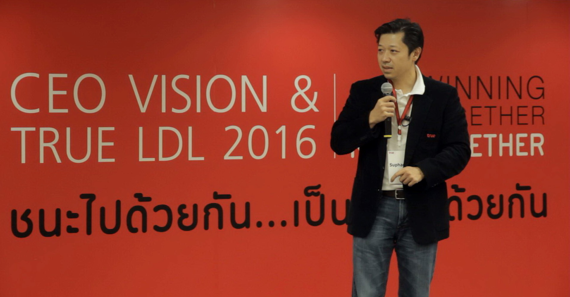 เมื่อวันศุกร์ที่ 12 กุมภาพันธ์ 2559 พลังผู้นำทรูชื่นมื่นสุดสุด..สีแดงสุดสุดกว่า 350 ท่านสะท้อนพลังขับเคลื่อนเป็นหนึ่งเดียว “ชนะไปด้วยกัน เป็นที่ 1 ด้วยกัน” สานเจตนารมณ์ท่าน CEO คุณศุภชัย เจียรวนนนท์ ด้วยพลังเต็มเปี่ยม กับวาระแห่งปีที่ทุกคนรอคอย “CEO Vision and true LDL 2016” เพื่อมอบวิสัยทัศน์และทิศทางการทำงานของกลุ่มทรูประจำปี 2016 ณ Together Hall ชั้น 7 True Tower 2 ถนนพัฒนาการ
