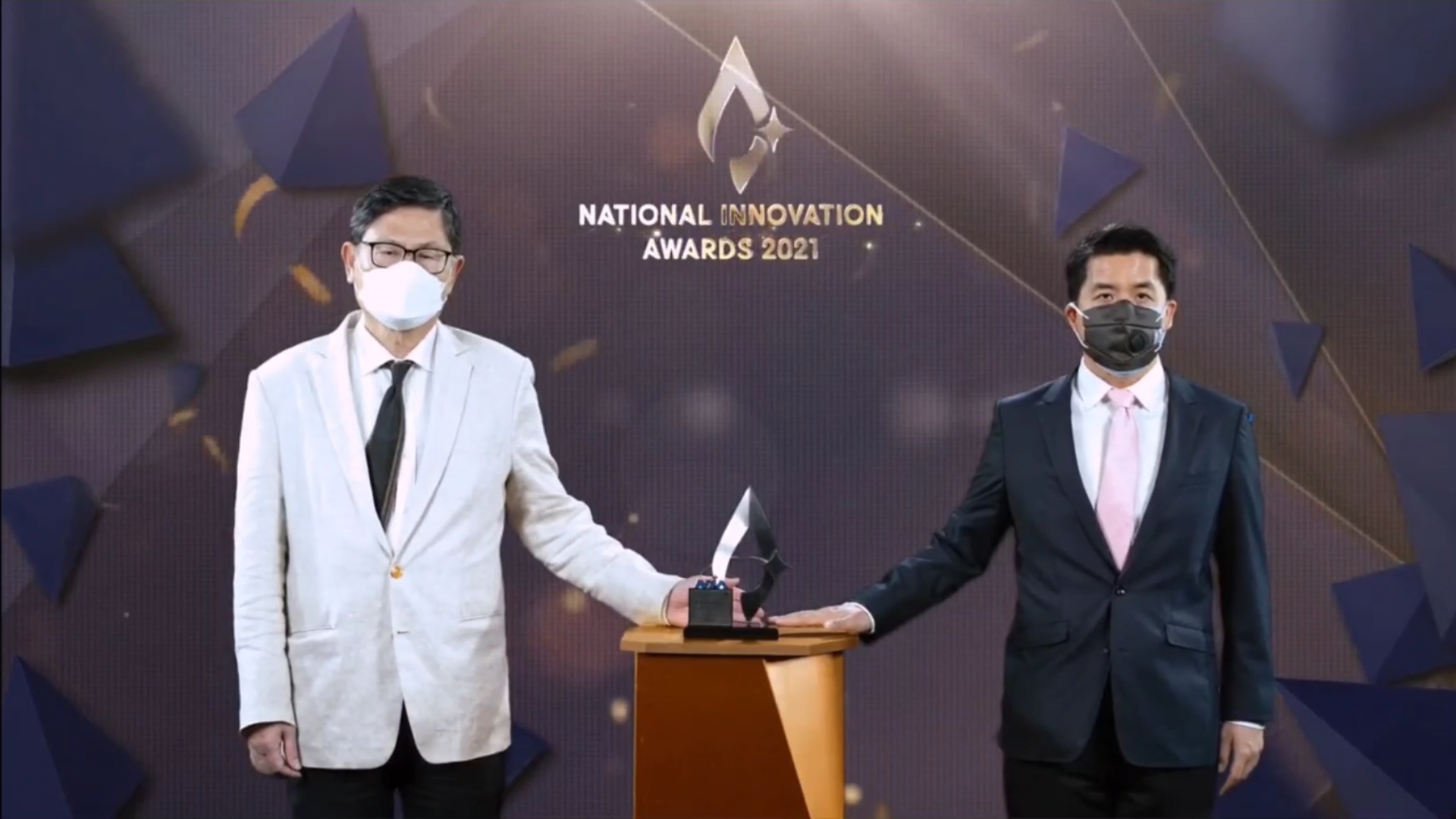 ศาสตราจารย์พิเศษ ดร.เอนก เหล่าธรรมทัศน์ (ซ้าย) รัฐมนตรีว่าการกระทรวงการอุดมศึกษา วิทยาศาสตร์ วิจัย และนวัตกรรม ร่วมแสดงความยินดี พร้อมมอบรางวัลนวัตกรรมแห่งชาติ ด้านองค์กรนวัตกรรม ประเภทองค์กรขนาดใหญ่ แก่กลุ่มทรู โดย ดร.ธีระพล ถนอมศักดิ์ยุทธ (ขวา) หัวหน้าคณะผู้บริหาร ด้านนวัตกรรมและความยั่งยืน บมจ.ทรู คอร์ปอเรชั่น ในฐานะองค์กรที่มีการบริหารจัดการนำองค์ความรู้ เทคโนโลยี และความคิดสร้างสรรค์ ตั้งแต่ระดับยุทธศาสตร์ กระบวนการ ไปจนถึงระดับโครงสร้างมาประยุกต์ใช้ เพื่อสร้างคุณค่าทั้งเชิงพาณิชย์ และการเติบโตอย่างยั่งยืนขององค์กร เนื่องในงานวันนวัตกรรมแห่งชาติ ประจำปี 2564 ซึ่งปีนี้จัดในรูปแบบออนไลน์ โดยสำนักงานนวัตกรรมแห่งชาติ (องค์การมหาชน) กระทรวงการอุดมศึกษา วิทยาศาสตร์ วิจัยและนวัตกรรม