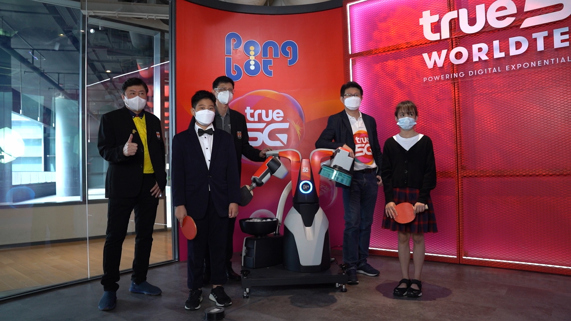 นายวิฑูรย์ เจียมศิริกาญจน์ รองผู้อำนวยการ และคณะทำงาน 5G บมจ.ทรู คอร์ปอเรชั่น กล่าวว่า ทรู 5G ตอกย้ำผู้นำเครือข่าย 5G ที่ดีทีสุด เร็วแรง และครอบคลุมมากที่สุดทั่วประเทศ เดินหน้านำเครือข่ายอัจฉริยะทรู 5G ผสานเทคโนโลยีดิจิทัลครบวงจร ร่วมพลิกโฉมอุตสาหกรรมในมิติต่างๆ สร้างนวัตกรรมขับเคลื่อนการพัฒนาเพื่อการเติบโตอย่างยั่งยืน ล่าสุด ร่วมยกระดับวงการกีฬาครั้งแรกในไทย จับมือ สมาคมกีฬาเทเบิลเทนนิสแห่งประเทศไทย ผลักดันศักยภาพและเพิ่มขีดความสามารถของนักกีฬาเทเบิลเทนนิสไทยให้ก้าวไกลเทียบชั้นสากล เปิดตัว ซุปเปอร์โค้ชยุคดิจิทัล “Pongbot” หุ่นยนต์ฝึกปิงปองอัจฉริยะ ล้ำด้วยเทคโนโลยี 5G และ Robotics ทำงานร่วมกับกล้องจับความเคลื่อนไหว สามารถตอบสนองแบบเรียลไทม์ตามระดับความสามารถของนักกีฬาได้อย่างแม่นยำ ฝึกความแข็งแกร่งได้อย่างต่อเนื่องไม่เหนื่อยล้า ปรับวิธีการเสิร์ฟลูกปิงปอง ระดับความเร็ว แรง และเพิ่มความท้าทายในการฝึกได้ถึง 4 ระดับ ตั้งแต่ Entertainment, Training, Challenge และ Professional ช่วยสร้างความจำให้กับกล้ามเนื้อของนักกีฬาได้เป็นอย่างดี อีกทั้งยังใช้เทคโนโลยี AI จัดเก็บ ประมวลผล และวิเคราะห์ข้อมูลเชิงลึก เพิ่มสมรรถภาพให้นักกีฬาได้แบบเฉพาะบุคคล จึงช่วยพัฒนาได้ทั้งทักษะและเทคนิคการเล่น รวมถึงช่วยเพิ่มประสิทธิภาพในการฝึกได้อีกด้วย