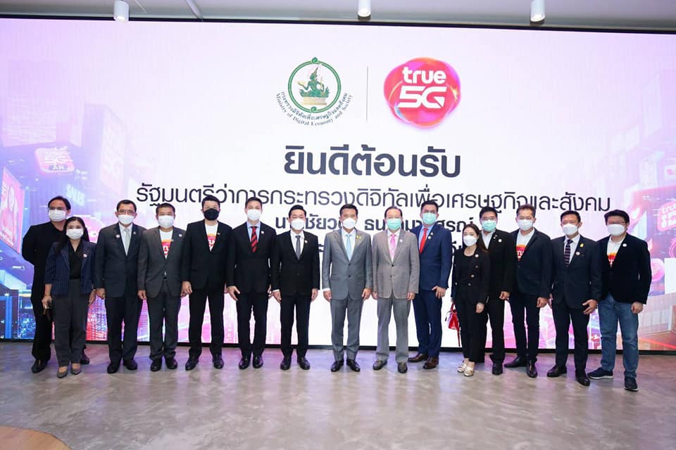 นายชัยวุฒิ ธนาคมานุสรณ์ รัฐมนตรีว่าการกระทรวงดิจิทัลเพื่อเศรษฐกิจและสังคม และคณะ เยี่ยมชมและดูงานด้านเทคโนโลยีดิจิทัลของกลุ่มทรู โดยมี นายวิเชาวน์ รักพงษ์ไพโรจน์ ประธานคณะผู้บริหารด้านกิจการองค์กร บริษัท เครือเจริญโภคภัณฑ์ จำกัด และนายณัฐวุฒิ อมรวิวัฒน์ กรรมการผู้จัดการใหญ่ (ร่วม) บมจ. ทรู คอร์ปอเรชั่น พร้อมผู้บริหารกลุ่มทรูให้การต้อนรับ และนำชม "True 5G Worldtech X" ศูนย์กลางความรู้และพัฒนานวัตกรรม 5G สัมผัสมิติใหม่แห่งนวัตกรรม 5G ที่จะเป็นพลังขับเคลื่อนเศรษฐกิจและสังคม พร้อมพลิกโฉมอุตสาหกรรมครอบคลุม 6 มิติ ได้แก่ เมืองอัจฉริยะ การเกษตรอัจฉริยะ การศึกษาอัจฉริยะ อุตสาหกรรมอัจฉริยะ คุณภาพชีวิตอัจฉริยะ และการค้าปลีกอัจฉริยะ รวมทั้งร่วมฟังบรรยายด้านเทคโนโลยีดิจิทัลของกลุ่มทรู อาทิ ไอโอทีและดิจิทัลโซลูชัน คลาวด์ดาต้าเซ็นเตอร์ และโครงการทรู ดิจิทัล พาร์ค ศูนย์กลางเทคและสตาร์ทอัพที่ใหญ่ที่สุดในอาเซียน ณ ทรู ดิจิทัล พาร์ค