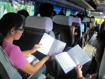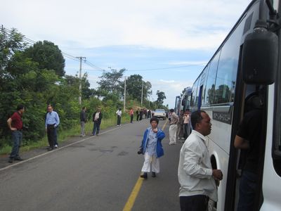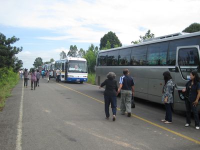 เนื่องจากจำนวนคนที่เดินทางมีจำนวนถึง ๔๘๐ คน ต้องใช้รถถึง ๑๒ คัน เดินทางเป็นขบวนยาว เวลาเข้าห้องน้ำแต่ละที ครูผู้ชายจึงต้องอาศัยตามป่าละเมาะ แถวๆ ข้างทางบ้าง แต่ก็ไม่เป็นอุปสรรค์กับคณะเท่าใดนัก