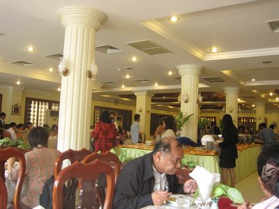เย็นวันนี้เรารับประทานอาหารที่ภัตตาคารทะเลแม่โขง มีการแสดงของนาฏศิลป์เขมร จะเป็นเรื่องราวเกี่ยวกับศาสนาฮินดู เช่นเรื่องรามเกียรติ และเรื่องราวในท้องถิ่น