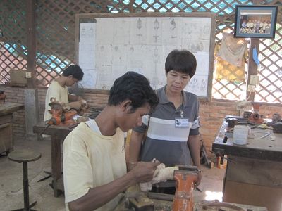 เช้าวันที่ ๔ กันยายน ๒๕๕๓ คณะได้เดินทางชมภาพประวัติศาสตร์เขมรแดง ที่วัดใหม่ และเยี่ยมชมศูนย์หัตถกรรม แกะสลักหิน อาร์ทิศซอง