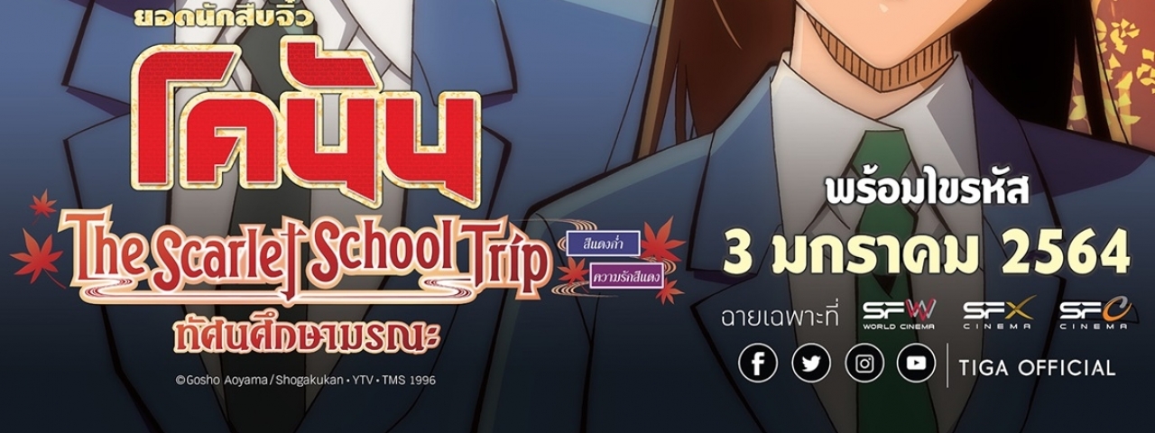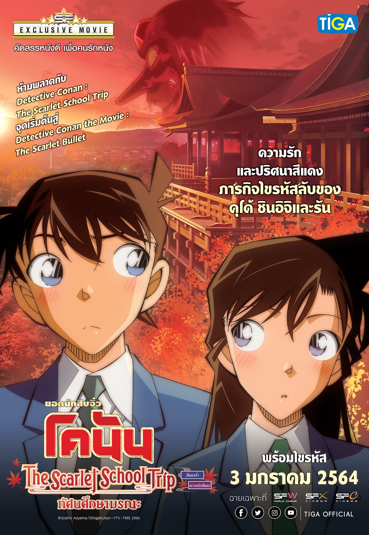 การร่วมกันไขปริศนารหัสลับของชินอิจิและเฮย์จิจะออกมาเป็นรูปแบบไหน ปริศนาสีแดงก่ำสุดท้ายจะจบลงอย่างไร และเรื่องราวความรักที่กำลังเบ่งบานของชินอิจิและรันจะสวยสดใสแค่ไหน ติดตามได้ใน ยอดนักสืบจิ๋วโคนัน ทัศนศึกษามรณะ (ภาคสีแดงก่ำ - ภาคความรักสีแดง) Detective Conan: The Scarlet School Trip แล้วมาไขปริศนาคดีพร้อมกัน 3 มกราคม 2564 นี้ ที่โรงภาพยนตร์ในเครือ SF Cinema เท่านั้น !