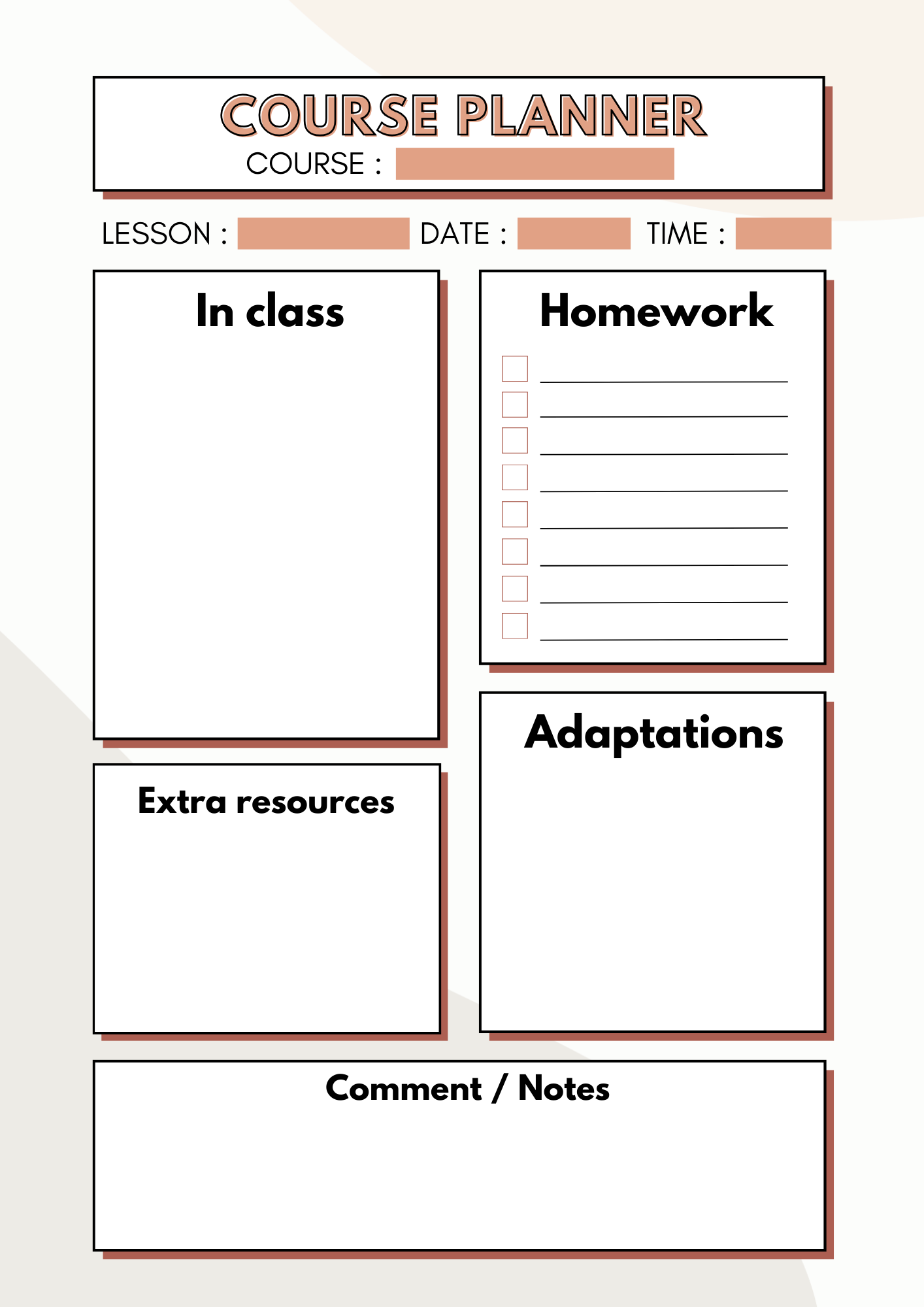 • ตารางเวลา: การกำหนดเวลาสำหรับการเรียนแต่ละหัวข้อ เช่น เวลาสำหรับการเรียนการสอนในชั้นเรียน การทำงานกลุ่ม หรือการทบทวนเนื้อหา