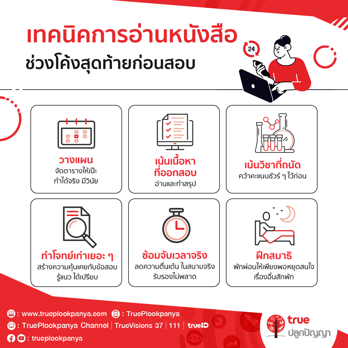 ช่วงโค้งสุดท้ายควรมุ่งเน้นไปที่เนื้อหาที่มีแนวโน้มจะออกสอบมากที่สุด การอ่านเนื้อหาที่สำคัญและการทำสรุปจะช่วยให้เข้าใจและจดจำข้อมูลได้ดีขึ้น การทำสรุปจะเป็นเครื่องมือที่ดีในการทบทวนและช่วยให้จำเนื้อหาได้เร็วขึ้นในช่วงเวลาที่จำกัด