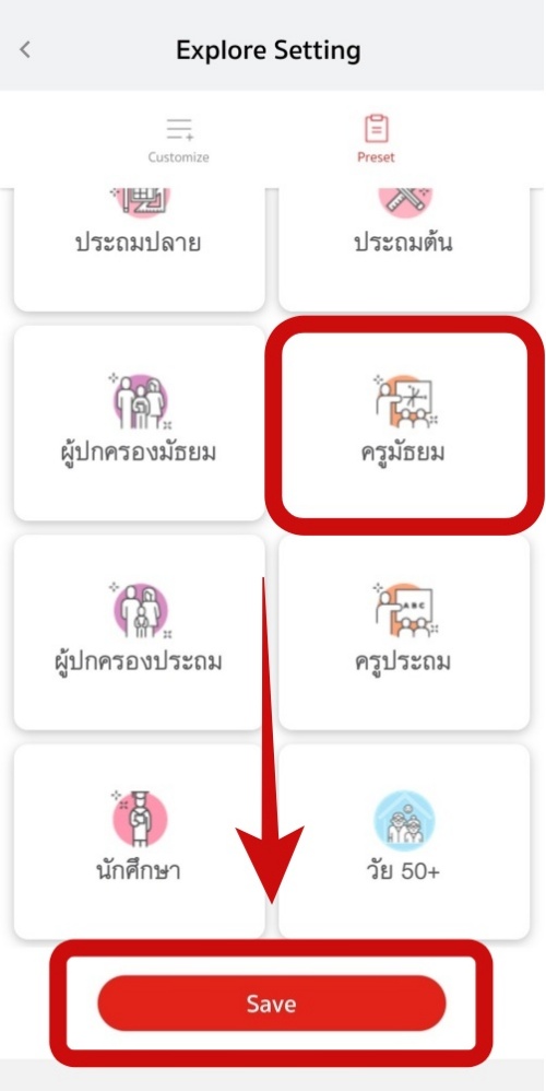 หน้า Preset เลือกครูมัธยม แล้ว SAVE