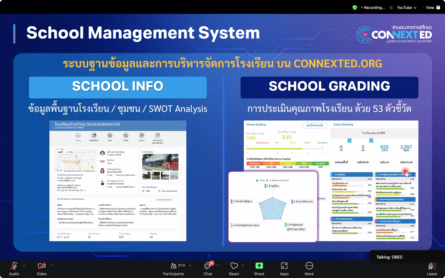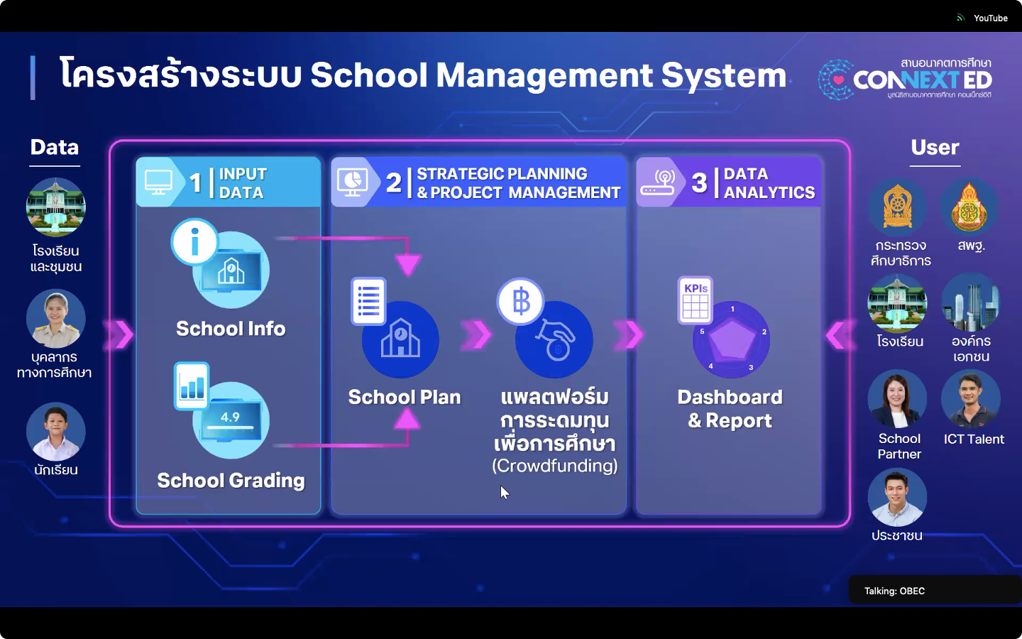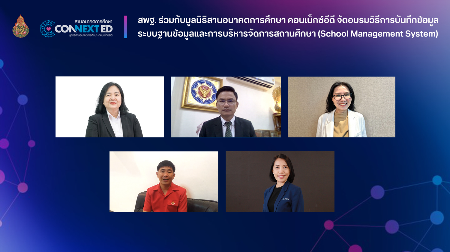 20 มีนาคม 2568 - สำนักงานคณะกรรมการการศึกษาขั้นพื้นฐาน ร่วมกับมูลนิธิสานอนาคตการศึกษา คอนเน็กซ์อีดี จัดการอบรมวิธีการบันทึกข้อมูลระบบฐานข้อมูลและการบริหารจัดการสถานศึกษา (School Management System) ให้แก่สำนักงานเขตพื้นที่การศึกษา ผู้บริหารสถานศึกษา และครูโรงเรียนคอนเน็กซ์อีดีในความดูแลทั่วประเทศ