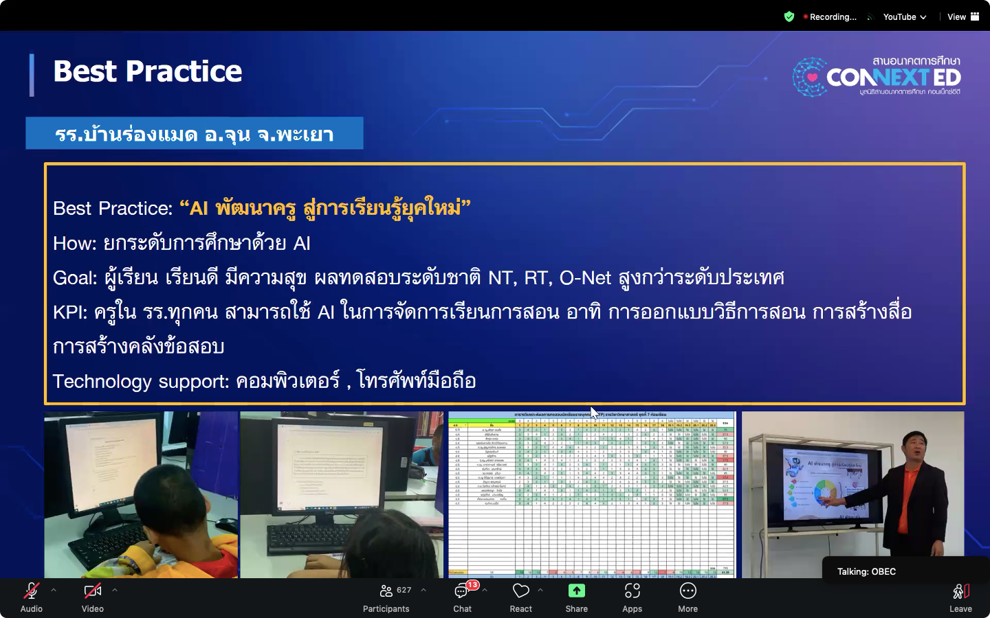 ทั้งนี้ ยังได้รับเกียรติจาก นายณัฐพงษ์ ชุมภู ผู้บริหารสถานศึกษา โรงเรียนบ้านร่องแมด จ.พะเยา มาร่วมแบ่งปันความสำเร็จของโรงเรียน โดยการนำผลประเมินโรงเรียนจากระบบ School Management System มาวิเคราะห์ต่อยอดทำแผนพัฒนาการยกระดับผลสัมฤทธิ์ด้วยโปรแกรม ATIP จนทำให้นักเรียนมีผลสัมฤทธิ์ที่ดีขึ้น