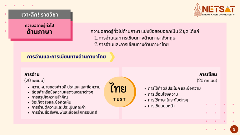 ข้อมูลจาก เอกสารประกอบงานแถลงข่าวเปิดตัว NETSAT สืบค้นเมื่อ 14 ต.ค. 64 : https://admissions.kku.ac.th/2021/09/20/netsat-doc/