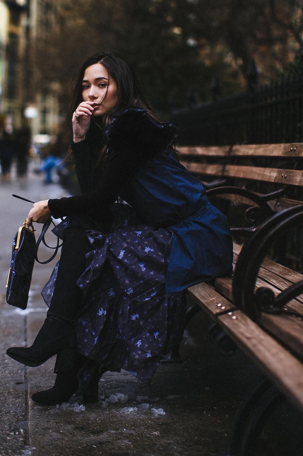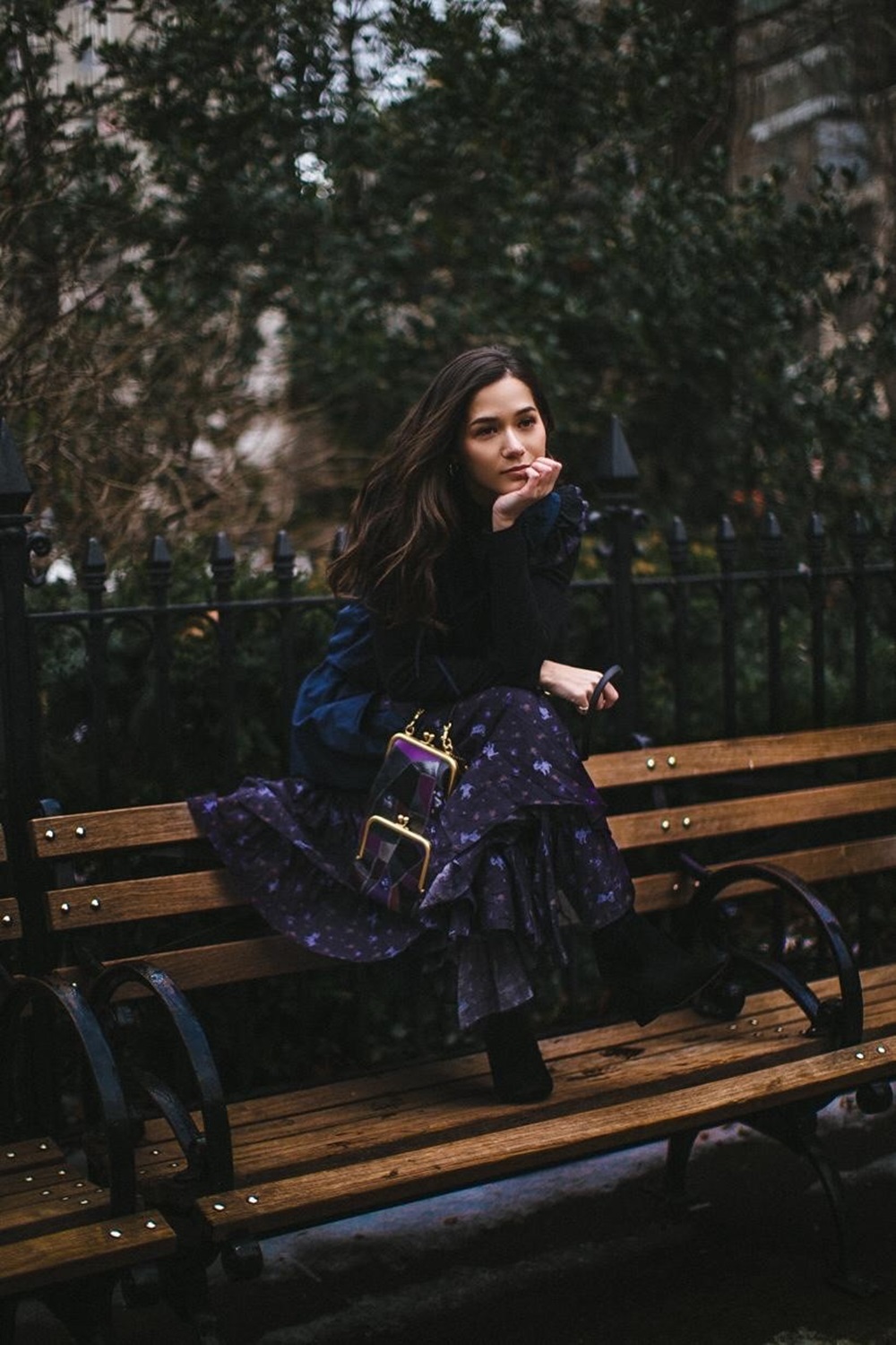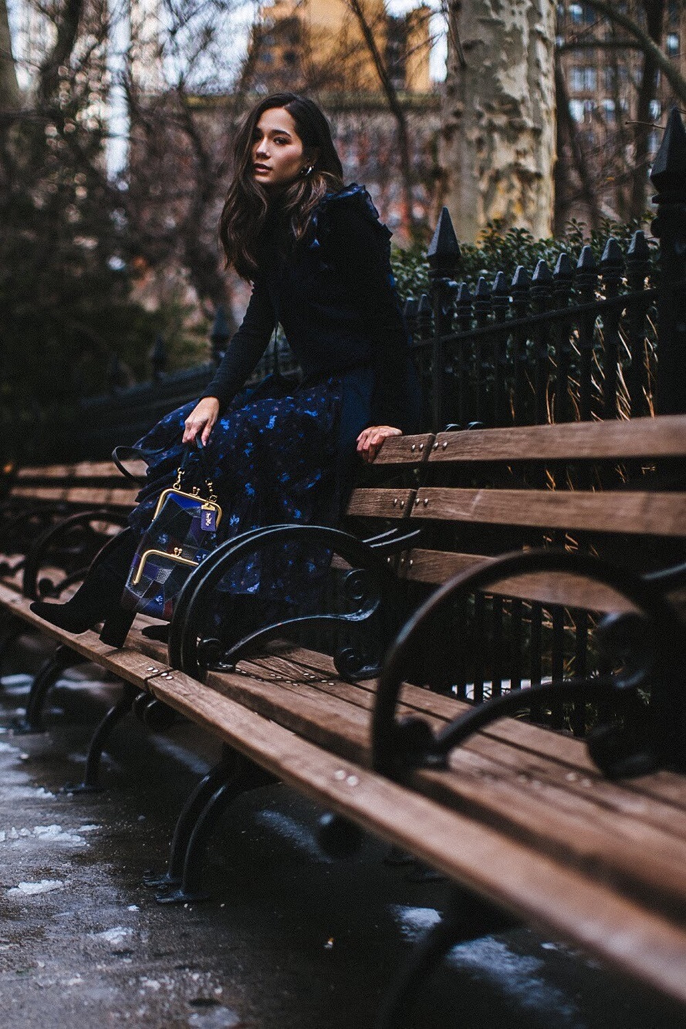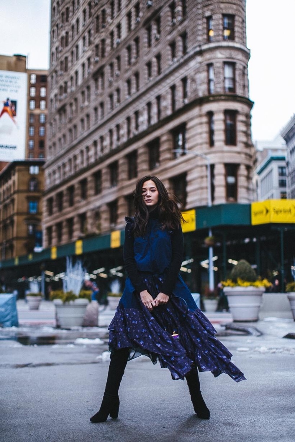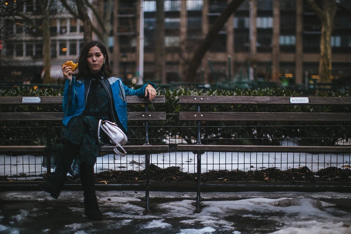 จากนั้นจึงไปเช็คอินที่ 5th Avenue ณ Flatiron building หนึ่งใน แลนมาร์คของนิวยอร์กด้วยคอลเลกชั่น สปริง 2019 (Spring 2019) มาในลุคเดรสยาวสีม่วงเข้ม สวมบูทยาวสีดำ เสร็จแล้วก็แวะไปนั่งรถม้า แถว ๆ Central Park ด้วยเสื้อเชิ้ตวินเทจ แขนตุ๊กตา จับจีบเป็นระบาย แมทช์กับกระโปรงหนังสีดำ และบูทยาวคลุมเข่า แบบว่า..อินเนอร์สาวนิวยอร์กมาก ๆ