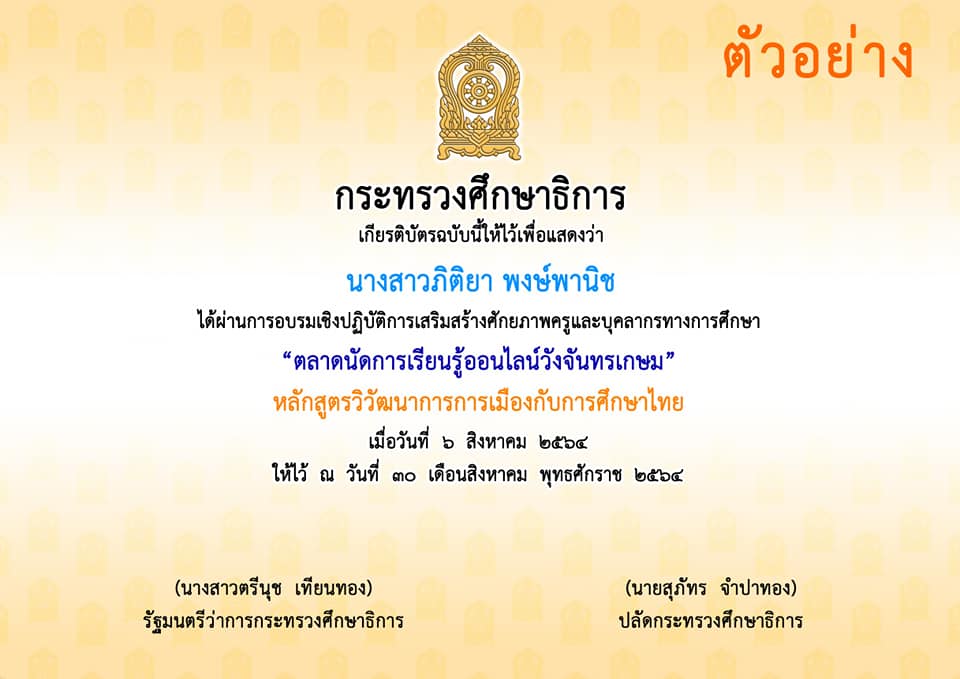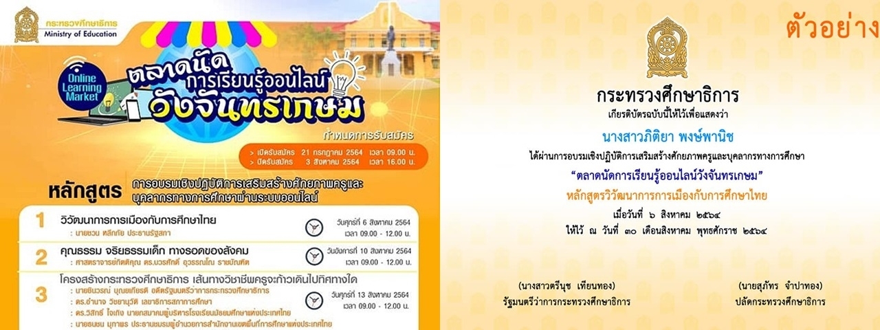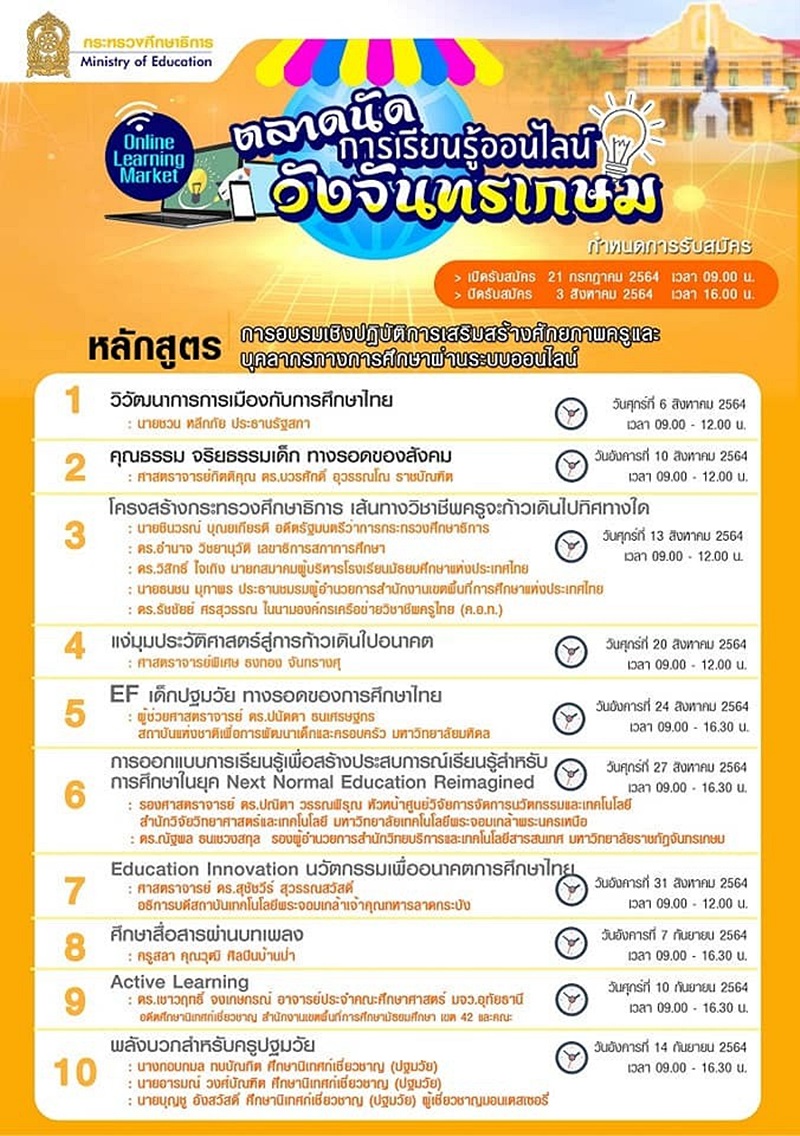 หลักสูตรที่ 3 โครงสร้างกระทรวงศึกษาธิการ เส้นทางวิชาชีพครูจะก้าวเดินไปทิศทางใด : ดร.อำนาจ วิชยานุวัติ / นายชินวรณ์บุณยเกียรติ (13 สิงหาคม 2564 เวลา 9.00-12.00)