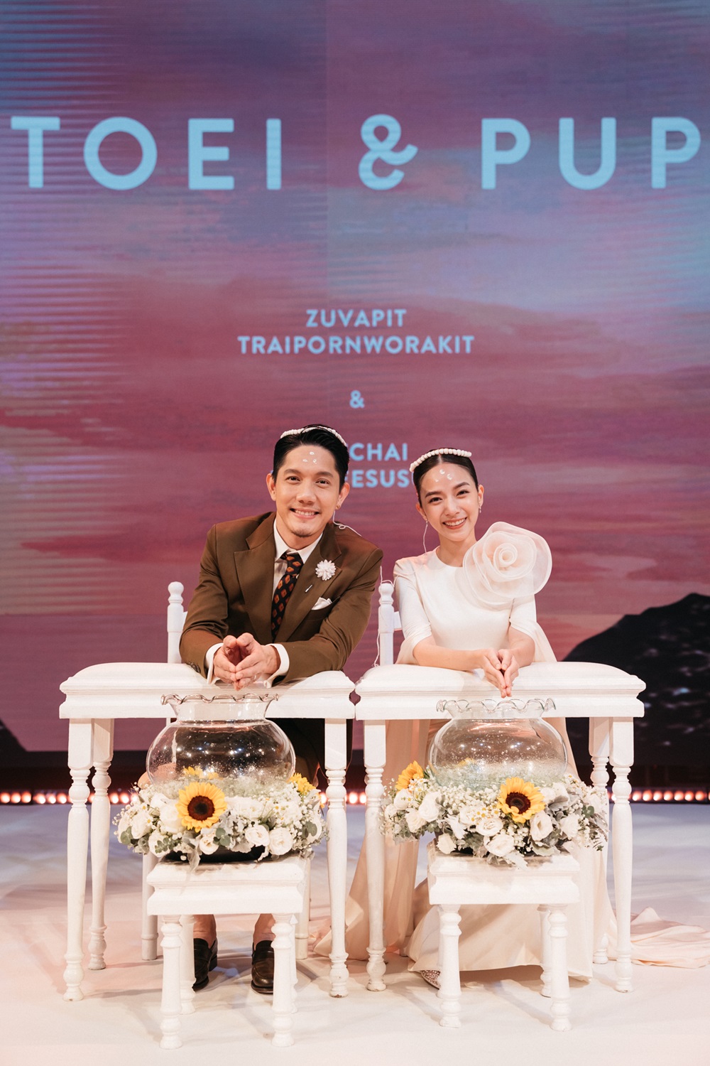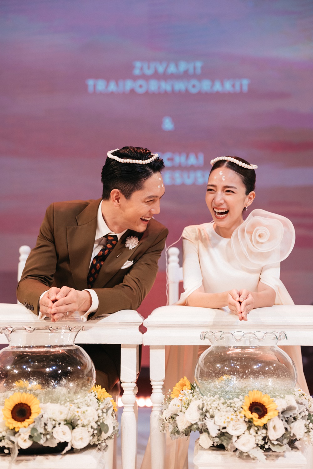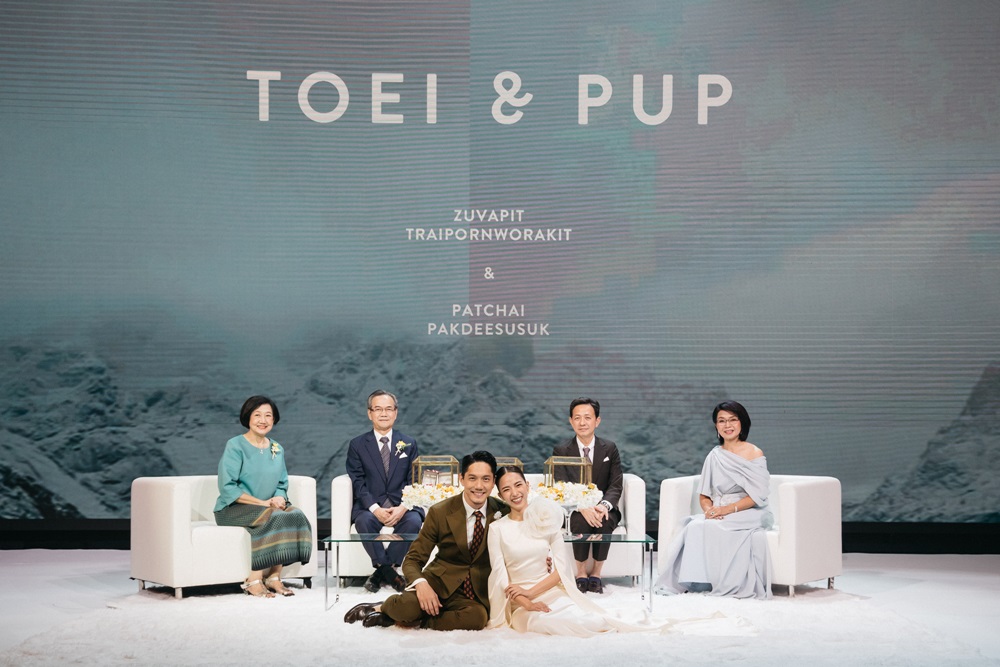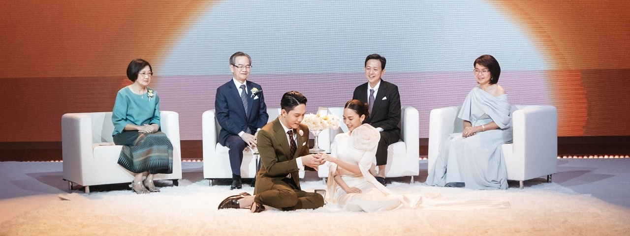 โดยช่วงเช้ามีการจัดพิธีแต่งงานตามประเพณีไทย ด้วยการแห่ขันหมาก ต่อด้วยการยกน้ำชา และทำพิธีรดน้ำสังข์ในลำดับต่อมา ซึ่งบรรยากาศภายในงานเต็มไปด้วยความสนุกสนาม อบอุ่น มีเสียงหัวเราะ และรอยยิ้มจากแขกที่มาร่วมงานตลอดทุกช่วงเวลา