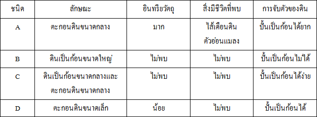 พิจารณาตารางชนิดและลักษณะของชั้นดินดังต่อไปนี้
