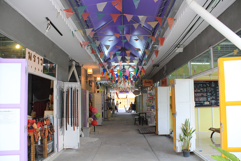 ภายในตลาดแบ่งเป็นโซนต่างๆ 5 โซนด้วยกัน โดยแต่ละโซนจะมีชื่อตามชื่อของพระราชวังในสมัยกรุงรัตนโกสินทร์ และจะแบ่งตามสีและสินค้าที่จำหน่าย โดยสถาปัตยกรรมเป็นแบบบ้านไม้ชั้นเดียวสไตล์สมัยรัตนโกสินทร์ ประตูบานเฟี้ยมสีสันสดใส