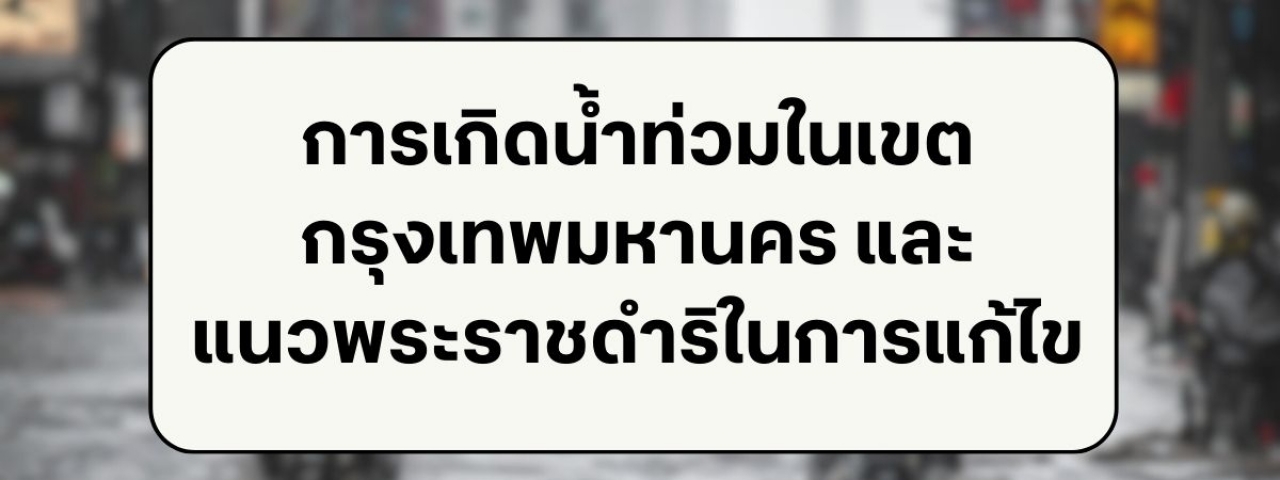 | การเกิดน้ำท่วมในเขตกรุงเทพมหานคร และแนวพระราชดำริในการแก้ไข กรุงเทพมหานครตั้งอยู่บนพื้นที่ราบลุ่มตอนปลายแม่น้ำเจ้าพระยา ไม่ไกลจากปากอ่าวไทยเท่าใดนัก ดังนั้น ระดับน้ำในแม่น้ำเจ้าพระยาบริเวณกรุงเทพมหานคร จึงอยู่ในอิทธิพลของน้ำขึ้นน้ำลง อันเนื่องมาจากระดับน้ำทะเลหนุน สภาพของกรุงเทพมหานครในอดีต ประกอบด้วยลำคลอง หนอง บึง และพื้นที่ว่างจำนวนมาก ปัญหาน้ำท่วมที่ทำให้ประชาชนได้รับความเดือดร้อน หรือเกิดอุทกภัยจนถึงขั้นภาวะเศรษฐกิจของประเทศได้รับความเสียหาย จึงเกิดขึ้นไม่บ่อยนัก ครั้นต่อมาความเจริญเติบโตของกรุงเทพมหานคร ซึ่งปราศจากการวางผังเมืองให้ถูกต้อง ไม่มีการวางแผนการใช้ที่ดิน และการจัดการด้านสาธารณูปโภคให้เหมาะสม ประกอบกับไม่มีมาตรการในการระบายน้ำ ออกจากพื้นที่ต่างๆ ตลอดจนขาดระบบการป้องกันน้ำท่วมเขตชุมชนที่มีประสิทธิภาพ เมื่อ ร่วมกับปัญหาการสูบน้ำบาดาลขึ้นมาใช้ โดยปราศจากการควบคุม จนเป็นเหตุให้แผ่นดินทรุดเป็นแอ่งในบริเวณกว้างด้วยแล้ว จึงก่อให้เกิดปัญหาน้ำท่วม และน้ำขังพื้นที่ทั่วกรุงเทพมหานครอย่างรุนแรงมากกว่าแต่ก่อน |