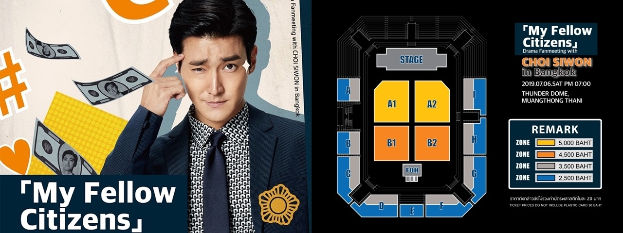 แฟนมีทติ้งที่จะทำให้วันธรรมดาของคุณไม่ธรรมดาอีกต่อไป เตรียมตัวเตรียมใจให้พร้อมแล้วมาพบกับผู้ชายที่ชื่อ “ซีวอน” หนุ่มหล่อมากเสน่ห์ ในวันเสาร์ที่ 6 กรกฎาคม 2562 ณ ธันเดอร์โดม เมืองทองธานี ราคาบัตร : 5,000 / 4,500 / 3,500 / 2,500 บาท เปิดจำหน่ายบัตร : วันเสาร์ที่ 1 มิถุนายน 2562 ตั้งแต่เวลา 10.00 น. เป็นต้นไป ทาง www.MyFellowCitizenswithChoiSiwoninbkk.com
