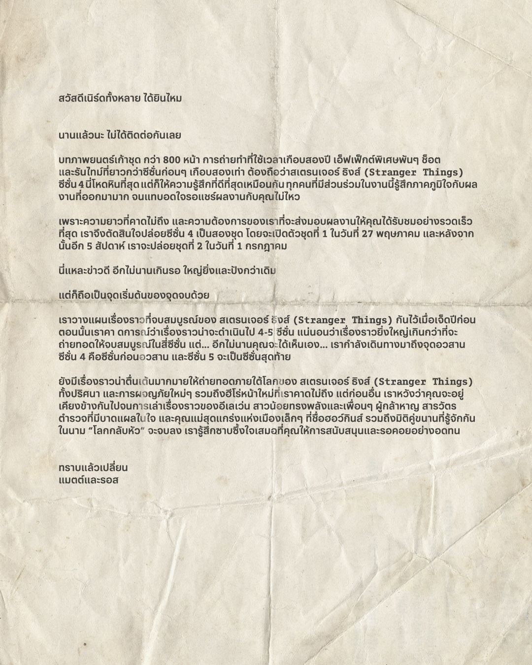 ซีรีส์ที่ได้เข้าชิงรางวัลเอมมี่ 3 สมัยในสาขาซีรีส์ดราม่ายอดเยี่ยมเรื่องนี้ติดอันดับผลงานจาก Netflix ที่มียอดการรับชมสูงสุด โดยเฉพาะซีซั่น 3 ด้วยยอดการรับชมสูงถึง 582 ล้านชั่วโมง ติดอยู่ในอันดับ 2 ใน 10 อันดับแรกของซีรีส์ภาษาอังกฤษที่มีผู้รับชมสูงสุดใน Netflix ส่วนซีซั่น 2 ก็มียอดการรับชมสูงถึง 427 ล้านชั่วโมง ติดอยู่ในอันดับ 10 ของ Netflix ด้วยเช่นกัน Stranger Things สร้างสรรค์โดยพี่น้องดัฟเฟอร์และสร้างโดย Monkey Massacre Productions และ 21 Laps Entertainment พี่น้องดัฟเฟอร์ยังรับหน้าที่ผู้อำนวยการสร้างของซีรีส์ร่วมกับชอว์น เลวี่และแดน โคเฮนจาก 21 Laps Entertainment และเอียน แพเทอร์สัน