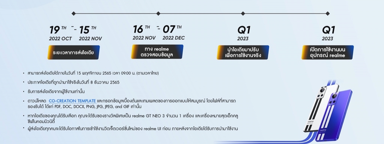 ดูรายละเอียดเพิ่มเติมของโครงการและเงื่อนไขการสมัครได้ที่ https://www.realme.com/global/2022realmecocreatewidget