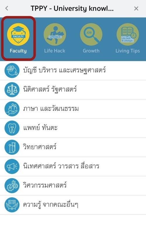เมนูแรก Faculty เป็นอีกหนึ่งส่วนสำคัญที่ช่วยให้ทุกคนสามารถสำรวจข้อมูลเกี่ยวกับคณะต่าง ๆ ในมหาวิทยาลัยทั่วประเทศ ไม่ว่าจะเป็น