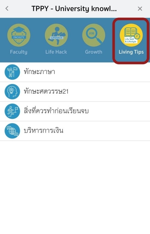 เมนู LIVING TIPS รวบรวมคำแนะนำที่ช่วยให้นักศึกษาใช้ชีวิตในมหาวิทยาลัยได้อย่างราบรื่นและมีความสุข ไม่ว่าจะเป็น