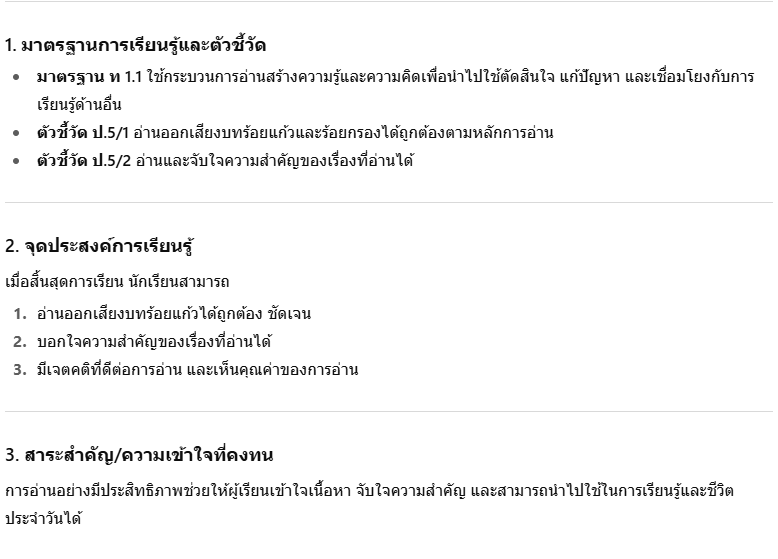 ระดับชั้นประถมศึกษาปีที่ 5 วิชาภาษาไทย เรื่อง ทักษะการอ่าน