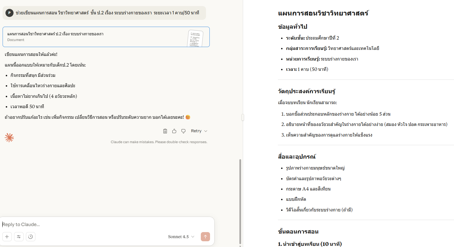 - หากมีเวลาเหลือ อาจเล่นเกมทบทวนเพิ่มเติม เช่น "ใครเร็วกว่า" ชี้อวัยวะตามที่ครูเรียก
