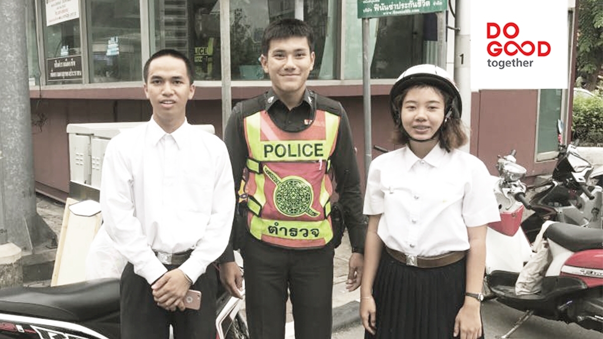 "ดาบตำรวจ กฤษณ์ บูรณ์เจริญ" จราจร สภ.ภาชี จ.พระนครศรีอยุธยา มีน้ำใจดี ช่วยข้ามไปซื้อข้าวเหนียวหมูปิ้งให้กับเด็กนักเรียน