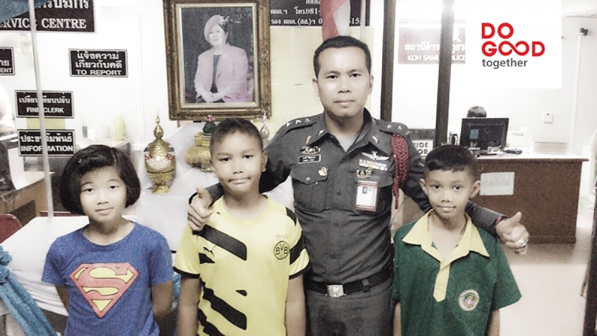 เพื่อนนักเรียนวัยประถมฯ 3 คน สังเกตเห็นกระเป๋าสตางค์ผ้าสีน้ำตาลใบเล็กตกอยู่ที่พื้น ขณะที่วิ่งเล่นกันอยู่ จึงนำไปส่งให้ตำรวจเพื่อติดต่อคืนแก่เจ้าของ