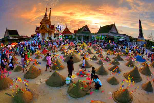 A: สุขสันต์วันสงกรานต์ครับแนท ประเพณีสงกรานต์นั้นเกี่ยวพันกับศาสนาพุทธอย่างลึกซึ้งมาช้านาน ศาสนาพุทธนอกจากจะมีพระสงฆ์เผยแผ่พระธรรมคำสอนให้แก่ญาติโยมแล้ว ทางญาติโยมก็ช่วยพระพุทธศาสนาด้วยการร่วมกันสร้างโบสถ์วิหาร ศาลาการเปรียญ ซึ่งเป็นสถานที่ปฏิบัติธรรมที่พระกับชาวบ้านใช้ร่วมกัน โดยทรายก็เป็นสิ่งจำเป็นอย่างหนึ่งในการสร้างศาสนสถานเหล่านั้น ทำให้ทุกครั้งที่มีงานบุญในวัด ชาวบ้านแต่ละคนจึงนำทรายมาให้วัด เพื่อใช้ในการก่อสร้างสิ่งจำเป็นภายในวัด ซึ่งปฏิบัติกันมาต่อเนื่องยาวนานจนกลายเป็นประเพณีครับ