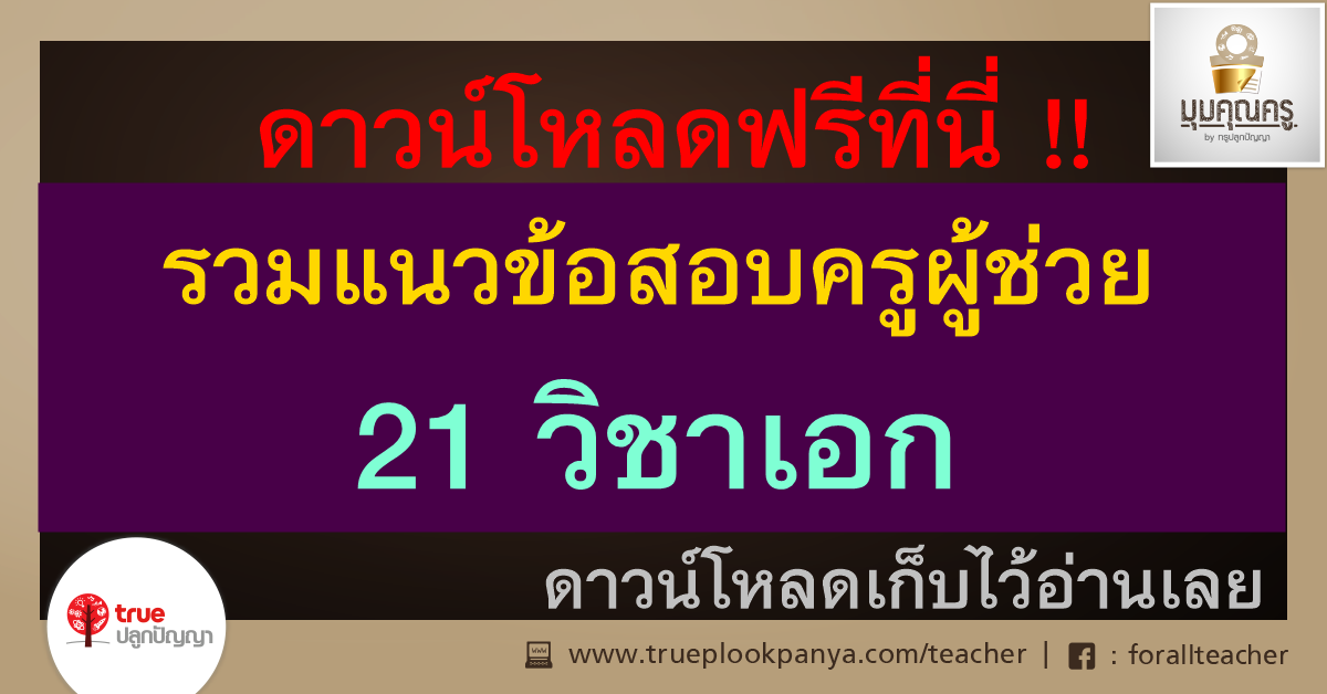 ดาวน์โหลดฟรีที่นี่ !! แนวข้อสอบครูผู้ช่วย (21วิชาเอก)