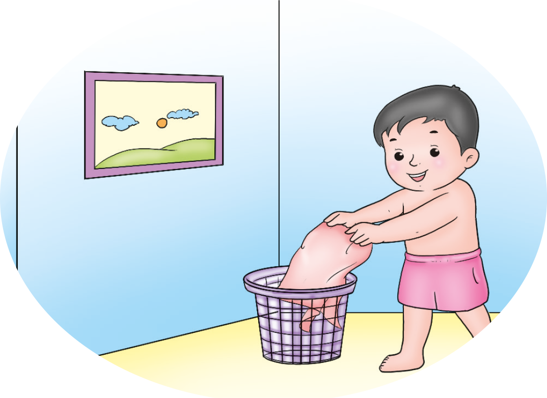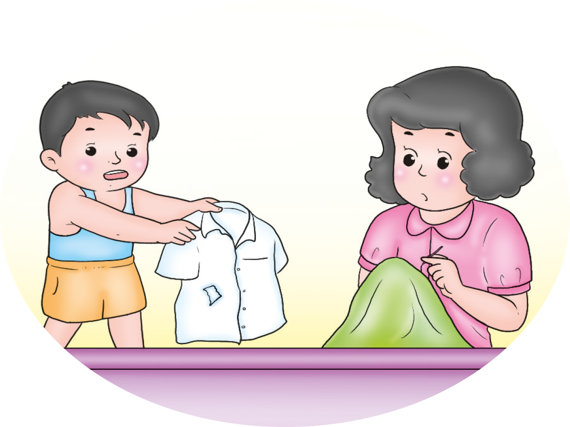ขณะช่วยแม่ทำอาหารหรือรับประทานอาหาร ควรสวมผ้ากันเปื้อน และไม่ควรเอามือเช็ดเสื้อผ้า