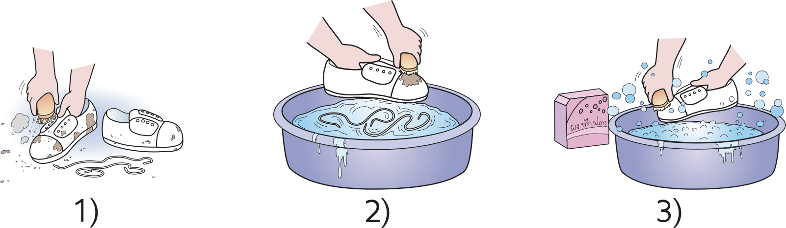 การทำความสะอาดรองเท้า มีขั้นตอนตามกระบวนการดังนี้