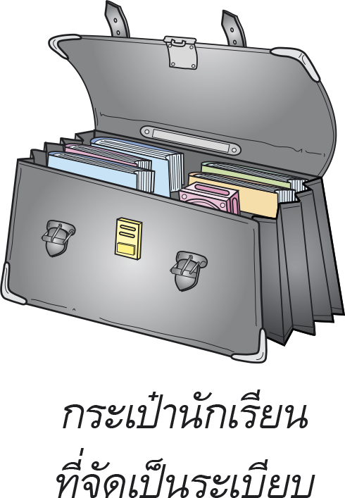 1. เตรียมหนังสือและสมุดตามตารางเรียน