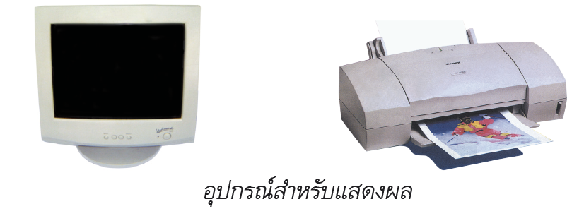 – หน่วยแสดงผล อุปกรณ์ที่ใช้แสดงผล เช่น จอภาพ ลำโพง