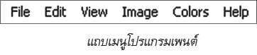 หน้าต่างโปรแกรมเพนท์ จะประกอบด้วย แถบเมนู จานสี เครื่องมือ และพื้นที่สำหรับวาด
