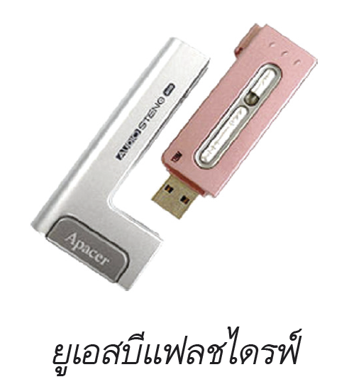 – ยูเอสบีแฟลชไดร์ฟ เป็นสื่อบันทึกข้อมูลด้วยชิป บันทึกข้อมูลได้หลายครั้ง