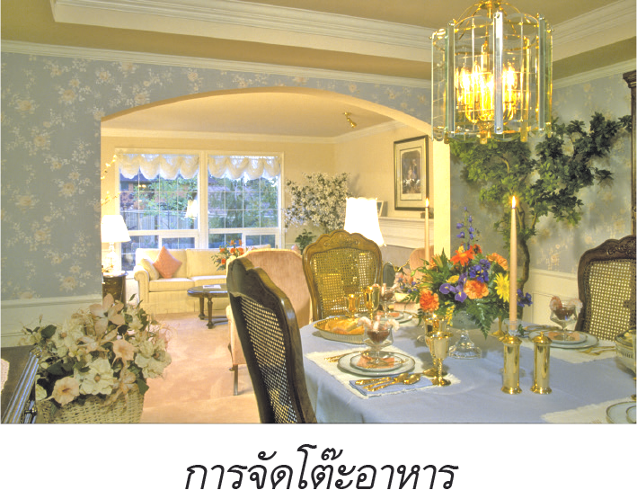 1. การจัดโต๊ะอาหาร ตู้อาหาร ตู้เย็น และห้องครัว