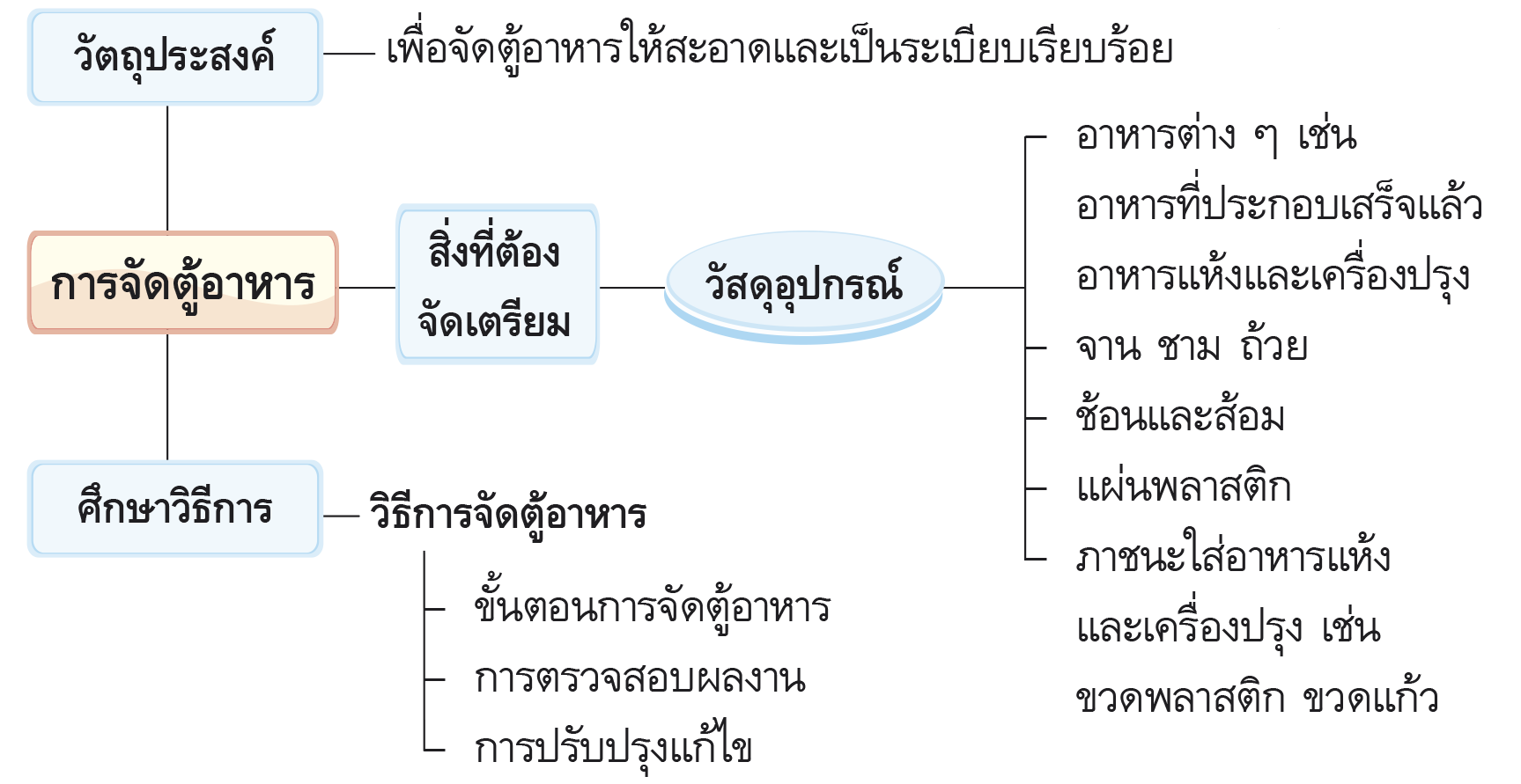 การจัดตู้อาหาร ตามกระบวนการทำงานมีขั้นตอนดังนี้