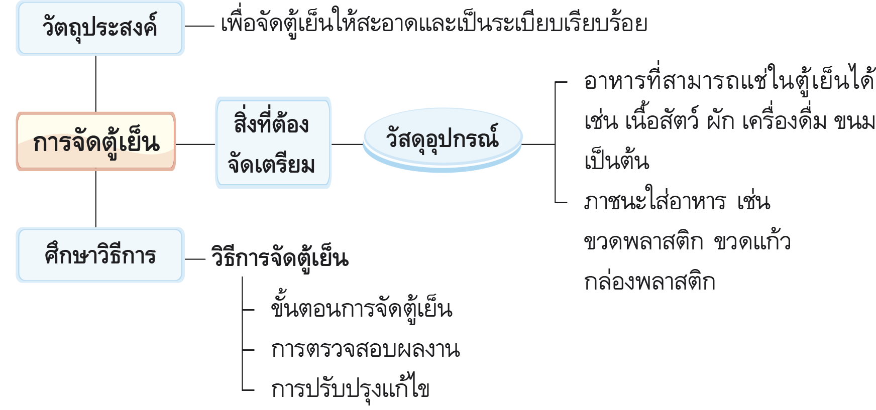 การจัดตู้เย็น ตามกระบวนการทำงานมีขั้นตอนดังนี้